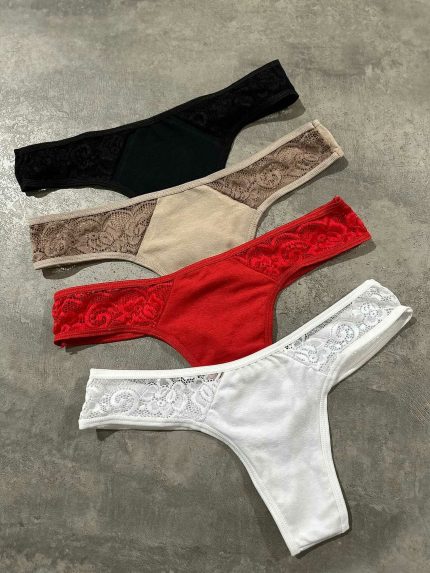 1010 COLA LESS DE ALGODON COMBINADA CON ENCAJE PACK X 4