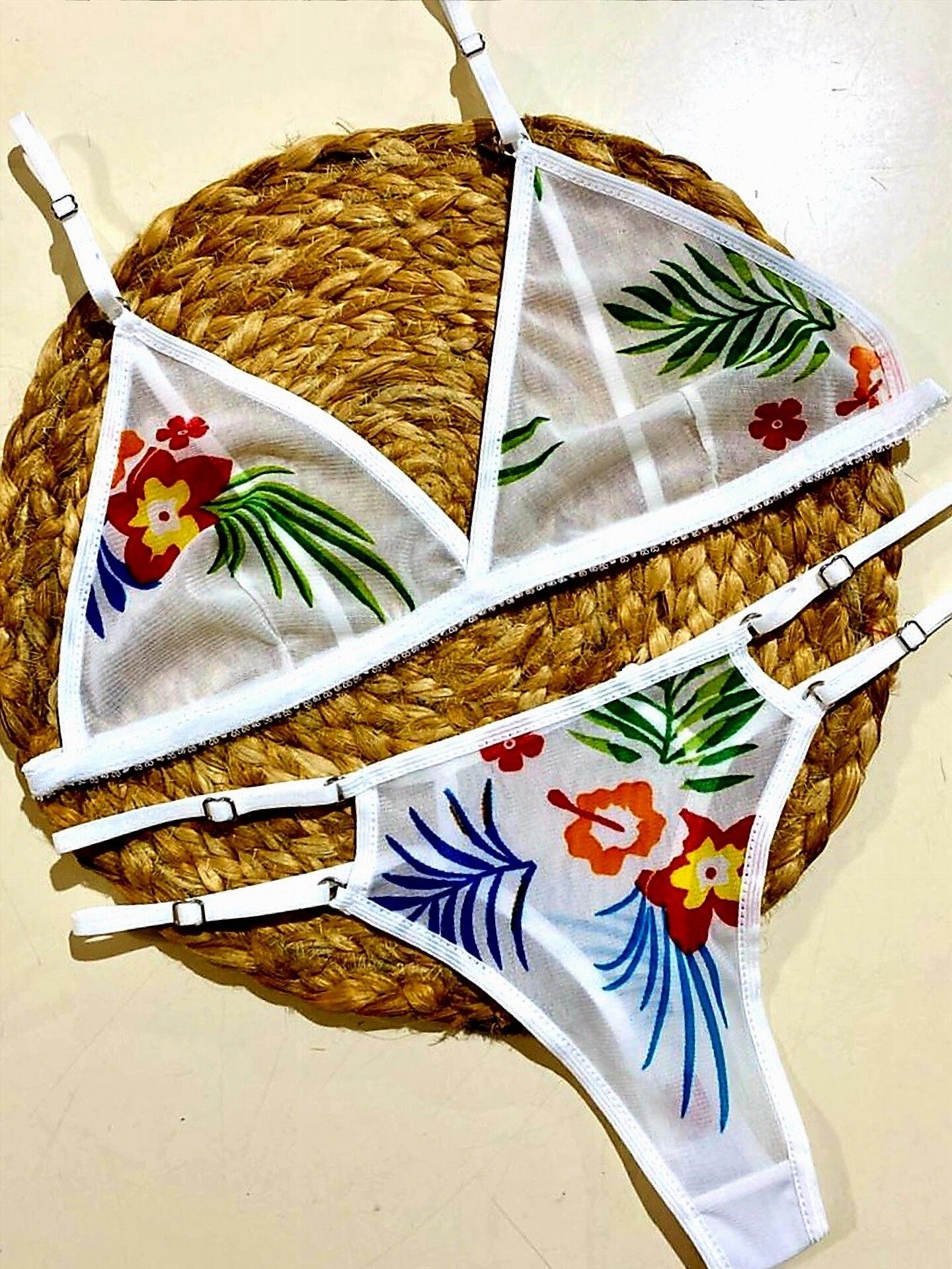ESTE CONJUNTO DE MICROTUL ESTAMPADO, COMBINA TRANSPARENCIA Y DISEÑO CREANDO UNA PRENDA LIVIANA Y SEDUCTORA