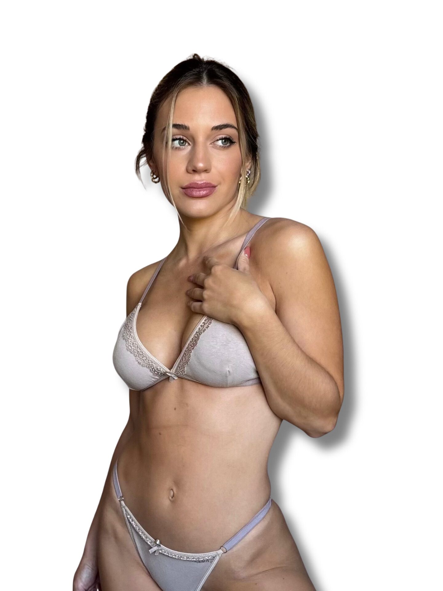 EL ESCOTE Y BOMBACHA DEL SET SE REALZAN CON PUNTILLA PREMIUM, APORTANDO UN TOQUE DELICADO Y FEMENINO AL DISEÑO.