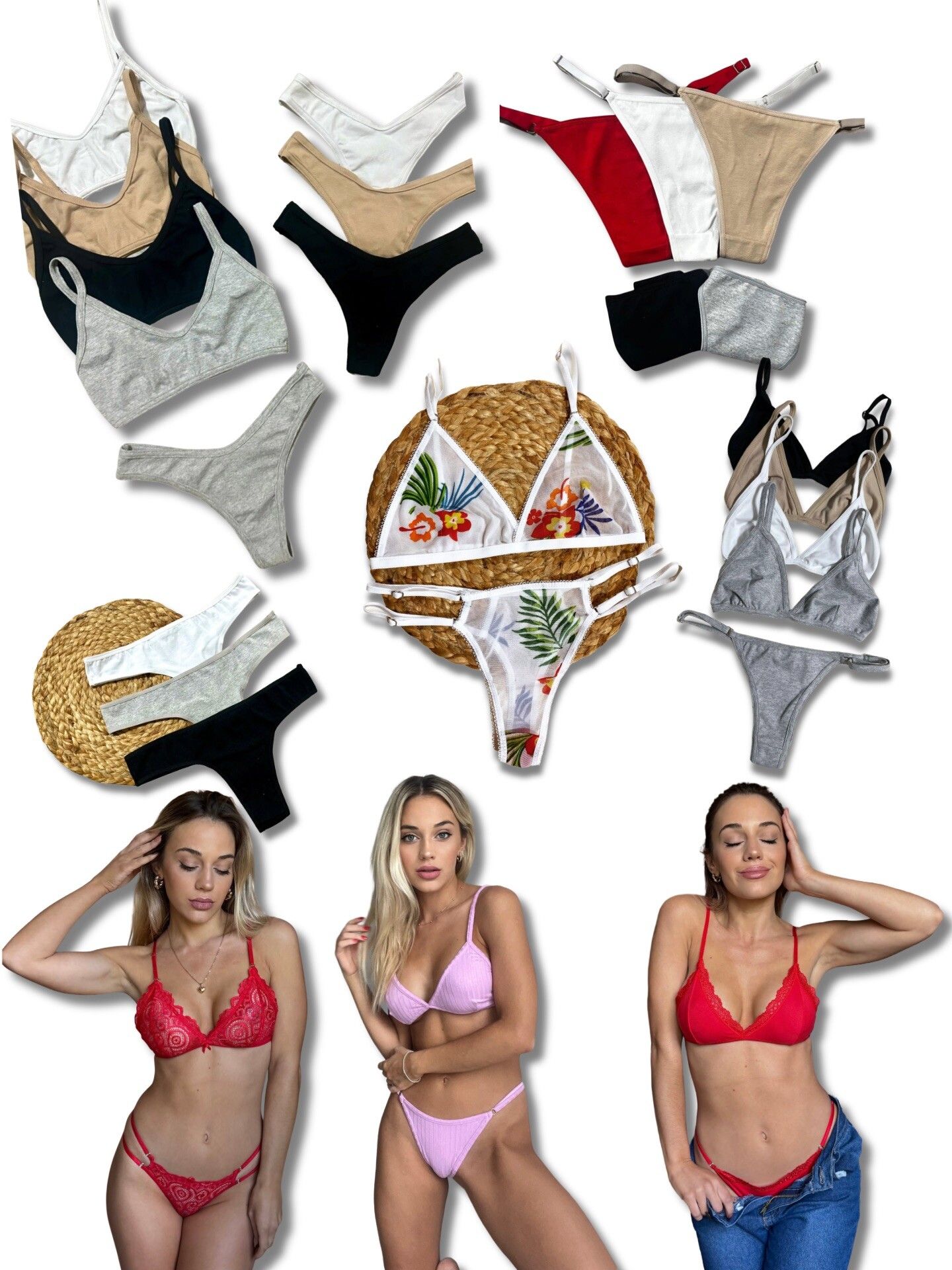 Este combo incluye una seleccion de lenceria femenina moderna y muy buscada, ideal para vender por redes sociales, whatsapp o tiendas online. son modelos comodos, actuales en talles y colores variados, lo que facilita vender rapidamente y duplicar tu inversion.